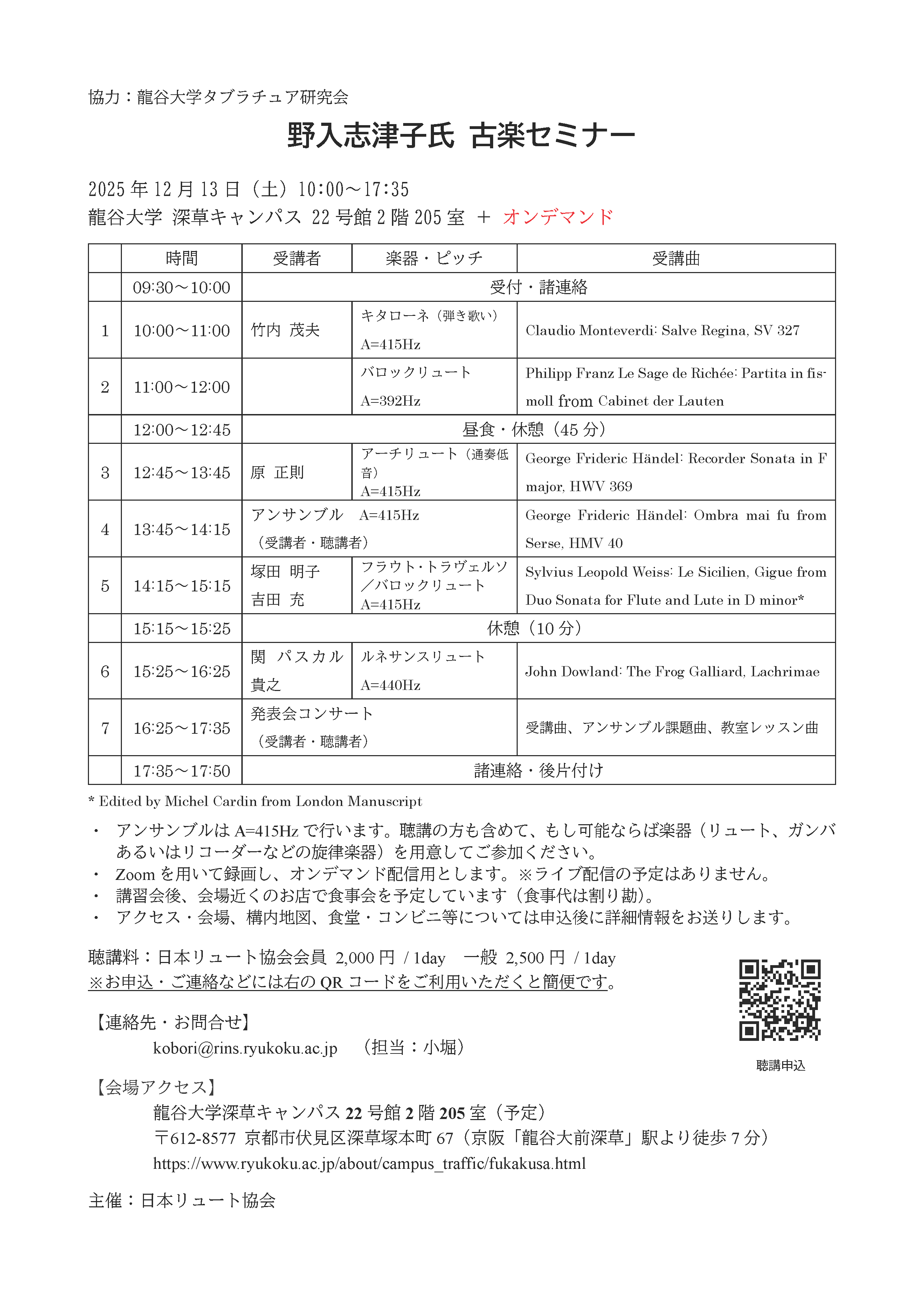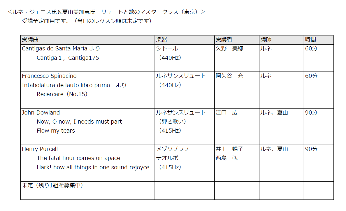 ・リュート属楽器を含むアンサンブルの指導