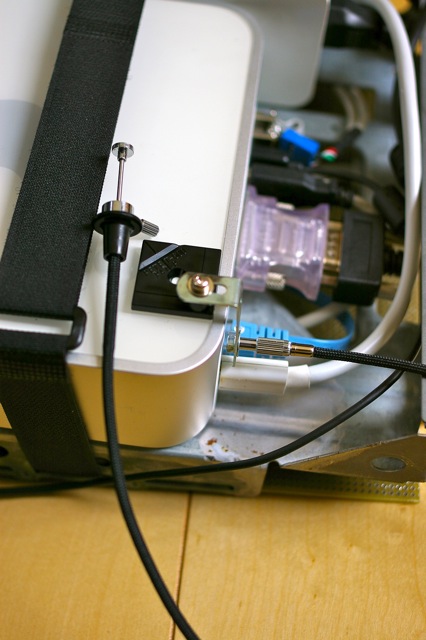取りつけはアルミのL型アングルを適当に加工して、A1中央部のU字型のアルミ放熱ブロックに固定しました。パワートランジスタを潔く取り外して、そのねじを使って取りつけました。