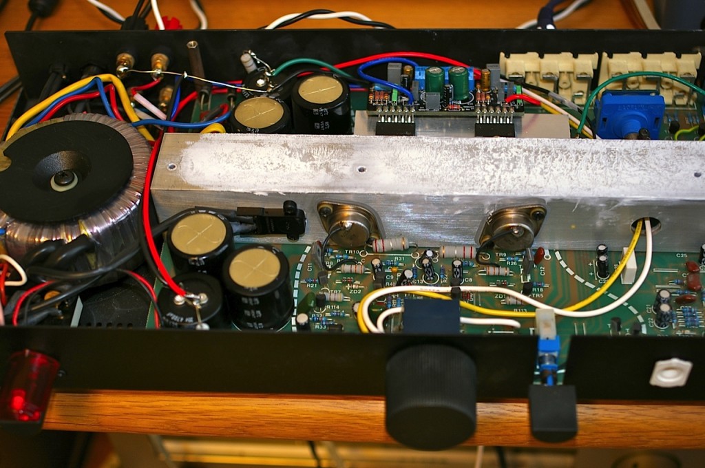 このA1は半導体アンプなのですが、真空管アンプでよく使用する「A級」動作をさせているのが特徴で、そのためものすごく発熱します。ケースの天版がヒートシンクを兼ねているのですが、しばらく通電していると手で触れないくらい温度が上昇します。