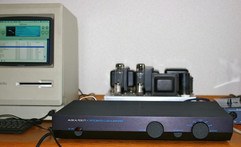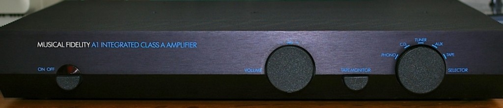 夏場だけでも半導体アンプに変えたいところですが、当方が持っているのはイギリスのMusical Fidelityという会社のA1というモデルです。Rogersに組み合わせるならイギリス製だろうということで、20年くらい前に購入したものです。